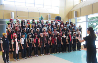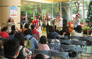 由金華國中合唱團帶來的美麗歌聲,為兒醫大樓的聖誕節慶祝活動增添了活潑的氣氛。由五十多位國中生演唱五首經典曲目-「GAUDEAMUS」、「KYRIE」、「永遠的故鄉」、「我只在乎你」、「Any dream will do」,搭配著優美的琴聲,輕快動人的歌聲,吸引了每一位來到兒醫大樓的大小朋友駐足,也讓人更加期待聖誕節的到來。
