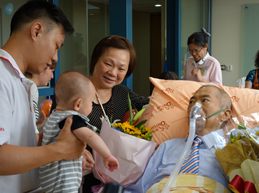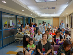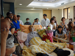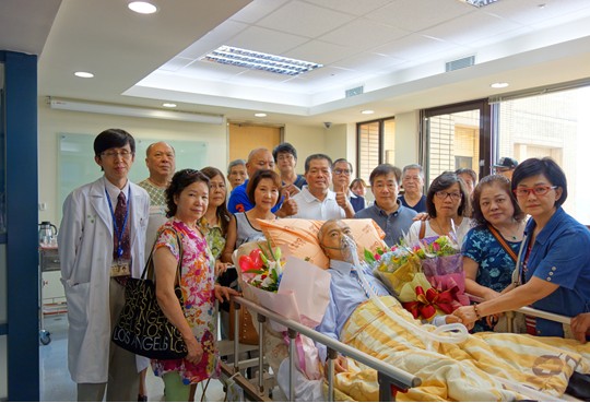 活動結束時,患者兒子代表致感謝詞,說出患者這段與病魔對抗歷程,以及對親戚朋友、醫療團隊的誠摯感謝,接著大家輪流與活動主角合照、送花,真的像是歌星簽唱會般,眾多粉絲簇擁著心目中的偶像!