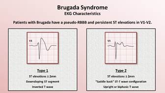 2005年由全球專家共同訂定診斷及治療指引,心電圖是抓出疾病徵兆的主要工具,其特徵原分為三型,但在2012年最新標準只有Type1(穹隆型)及Type2(鞍背型)。