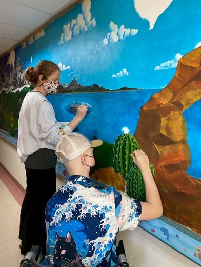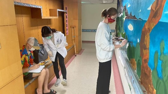 她不是只是想裝飾空間,而是想讓病人走在走廊上、坐在椅子上、望著牆上的畫時,能聽見自己內心微弱但頑強的聲音——訴說著「我還有夢」、「我還能想像」的聲音。對她來說,畫畫不是消磨時間,而是替孩子們找回心靈的色彩,也是讓姑姑回到美國後能與姪子留下共同的回憶及鼓勵。