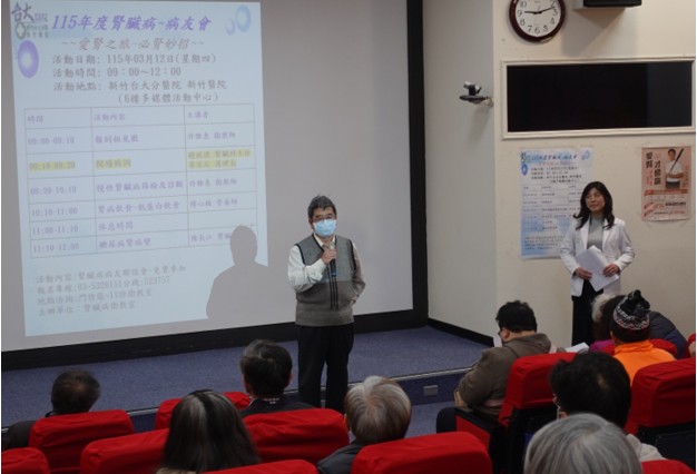 面對慢性腎臟病的診斷,病人的慌張與無助往往來自於對「洗腎」的恐懼及對「治療路長」的焦慮。要消解這份不安,專業腎臟病照護團隊的介入與收案照護是不可或缺的一環,藉由持續提供的個別化諮詢,我們不僅能協助病人掌握延緩惡化的關鍵,更能讓他們知道,在漫長的治療過程中,專業團隊會全程陪伴無需獨自面對。新竹臺大分院特別為了腎臟病人建立腎臟專業照護,也為了響應「世界腎臟日」(World Kidney Day)強化健康之識能,於115年3月12舉辦腎臟病病友會,採小班制深入指導45位病友及家屬。本次參與者涵蓋20歲青年至80歲長者,教育程度由不識字至博士學位,充分體現衛教不分背景、人人都能受益的精神;活動核心首由「慢性腎臟病篩檢及診斷」切入,引導民眾從政府推廣的成人健康檢查中建立預防觀念,並掌握最新臨床診斷指標;緊接著針對腎友最關心的「低蛋白飲食」,由專家帶領學員現場計算個人化熱量與蛋白質需求,確保營養與腎功能負擔達成平衡;最後則聚焦「糖尿病腎病變」之全球趨勢,揭示血糖控制與腎病惡化的緊密關聯,並提供具體的預防策略,旨在幫助跨世代、跨背景的病友與家屬,都能在日常生活中落實精準護腎,從源頭控制腎病變的發生。 一、國家政策與成人健檢的重要性 為了因應2025年臺灣邁入超高齡社會帶來的慢性病負擔,政府積極推廣「健康台灣888政策」,目標在2030年將三高相關慢性病的死亡率降低三分之一。根據國民健康署最新資料,40歲以上具備「三高」(高血糖、高血壓、高血脂)的族群中,每五人就有一人出現腎功能異常。為了強化預防保健,政府降低了成人健檢門檻,提供30至39歲民眾每5年一次;40至64歲每3年一次;以及65歲以上每年一次的免費健檢服務,幫助民眾及早發現潛在的腎臟問題。新竹臺大分院新竹醫院110年起擴大與地方醫院、診所及衛生所醫師看診系統,設有雙向轉診或共照及回覆提醒機制,目前與134家合作院所共享使用星月平台,透過此平台協助病患即時掛號及查閱電子病歷。每年定期與基層辦理社區健康篩檢活動,遇報告異常者即可啟動雙向轉診,共同全程照護病人。 二、成人健檢流程與篩檢項目 成人預防保健服務的流程涵蓋了全面的健康評估,包括健康行為調查、身體檢查、尿液檢查以及抽血檢查。在腎臟病篩檢方面,健檢項目特別包含尿蛋白檢測、血清肌酸酐(Scr)與腎絲球過濾率(eGFR)的計算。此外,自2026年起健檢服務新增了尿酸檢查與更詳細的衛教諮詢,旨在提升民眾對腎臟病的分期識能,並透過慢性疾病風險評估,提供個別化的健康管理建議,讓高風險族群能及時獲得醫療團隊的介入與追蹤 。 三、慢性腎臟病的診斷與建議 根據臺灣腎臟醫學會2025年最新的臨床指引,慢性腎臟病(CKD)的定義為「腎臟結構或功能異常,且持續超過三個月以上」。診斷標準包括(一)腎絲球過濾率(eGFR)小於60、(二)出現蛋白尿、尿液沈積物異常、(三)影像學或組織學顯示結構異常、以及(四)曾有腎臟移植病史等。若病程不明或未達三個月,則需進一步檢驗以鑑別是否為急性腎損傷。專家建議糖尿病患者應每年檢查一次腎功能,高血壓或有家族史者則應每三年追蹤一次,透過規律健檢與早期診斷,能有效延緩腎功能的惡化。 四、建立健康的「生活模式」與「風險因子管理」至關重要
